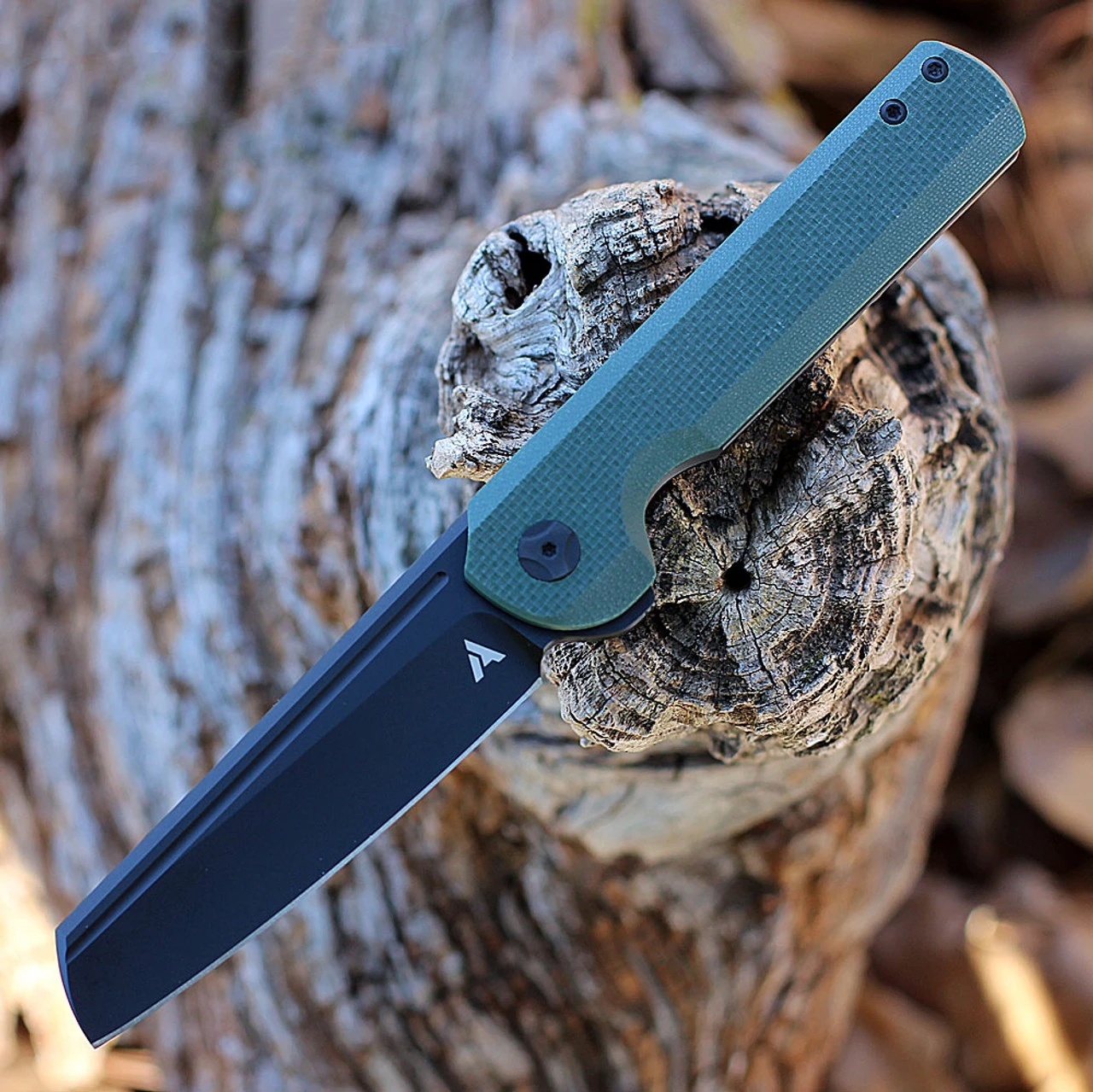 Arcform Darcform Slimfoot Folding – 3.5″ Bohler M390 Black Sheepsfoot Blade, Black Ti Frame lock with Green G-10 Peel-Ply Front Face