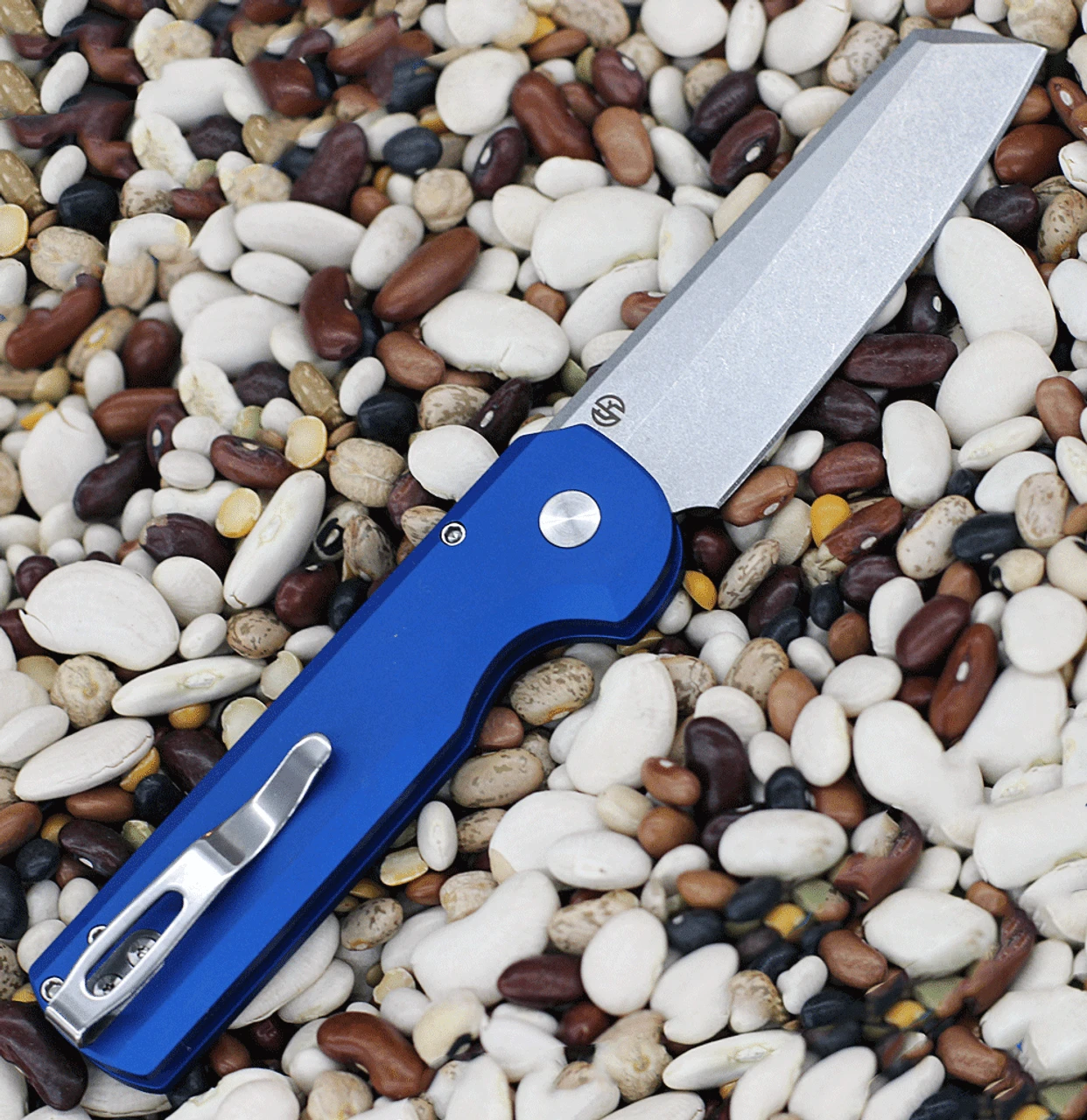The concept for this knife was to create a USA-made, automatic utility version of the classic Slimfoot. The result is a slightly more compact variation of the original, with a deep carry pocket clip, simple design, and clean lines. The Slimfoot Auto features a 6061-T6 aluminum handle with a blue Type III hardcoat anodized finish. The stonewash 154cm blade, a tried and proven steel, is easy to field maintain and will hold up to extended use. Best in class automatic action from Pro-Tech provides fast and reliable deployment. This knife was built to be carried and used.