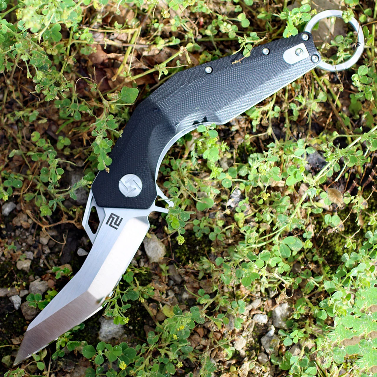 Artisan Cobra ATZ1811PBKC, 3″ D2 Plain Blade, Curved Black G-10 Handle