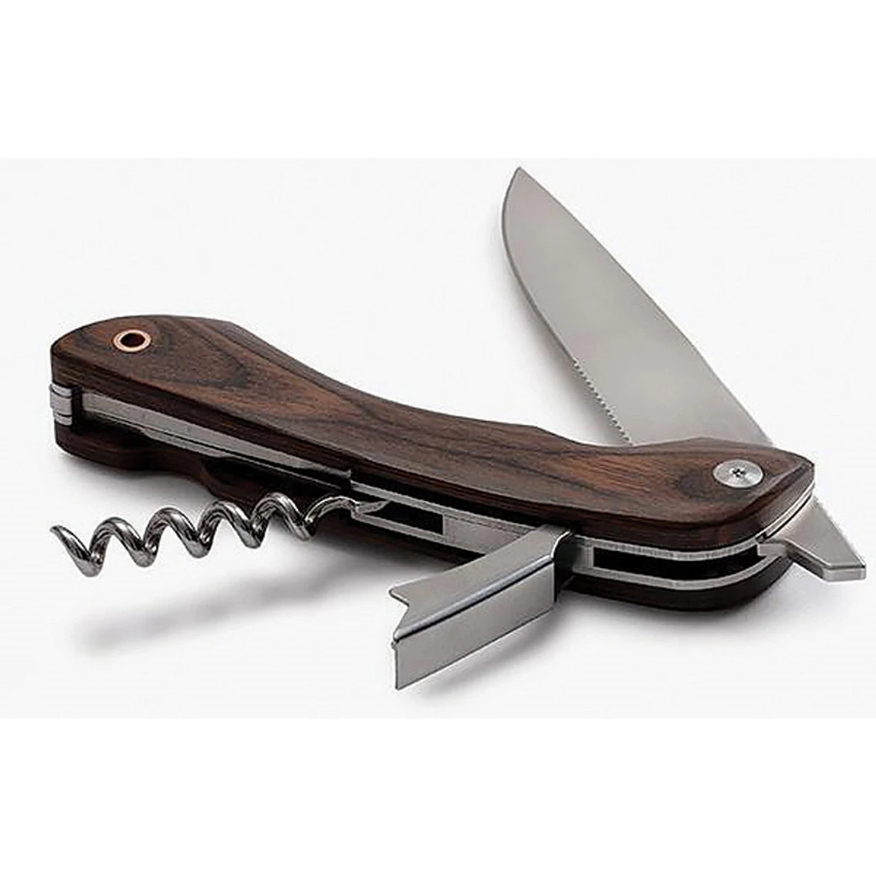 - Rich and durable composite hardwood handle with dark walnut finish