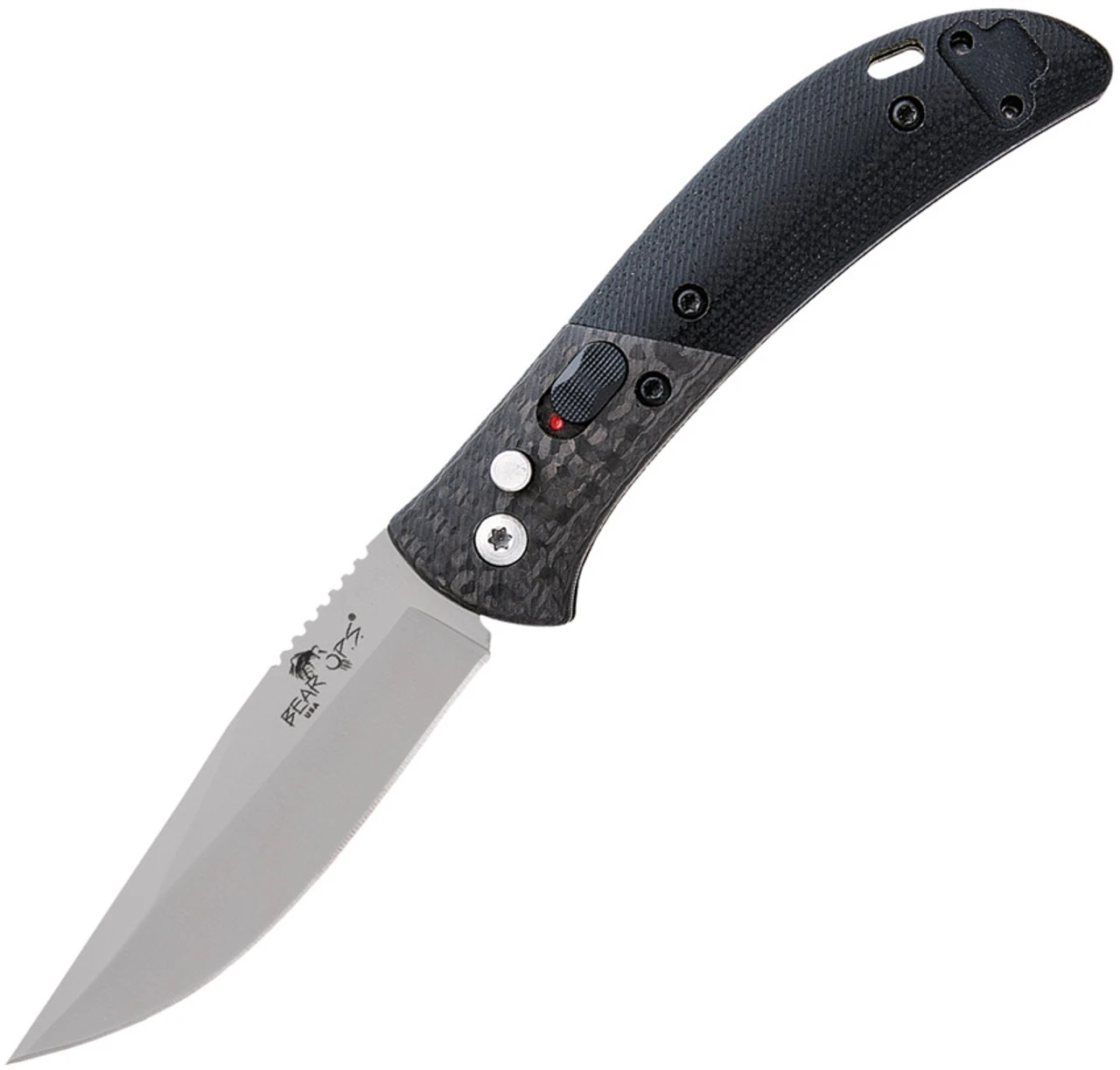 Bear Ops Bold Action IX Button Lock Automatic Knife ( BCAC900B4P) – 2.75″ 14C28N Sandvik Bead Blast Blade, Carbon Fiber/Black G10 Handle