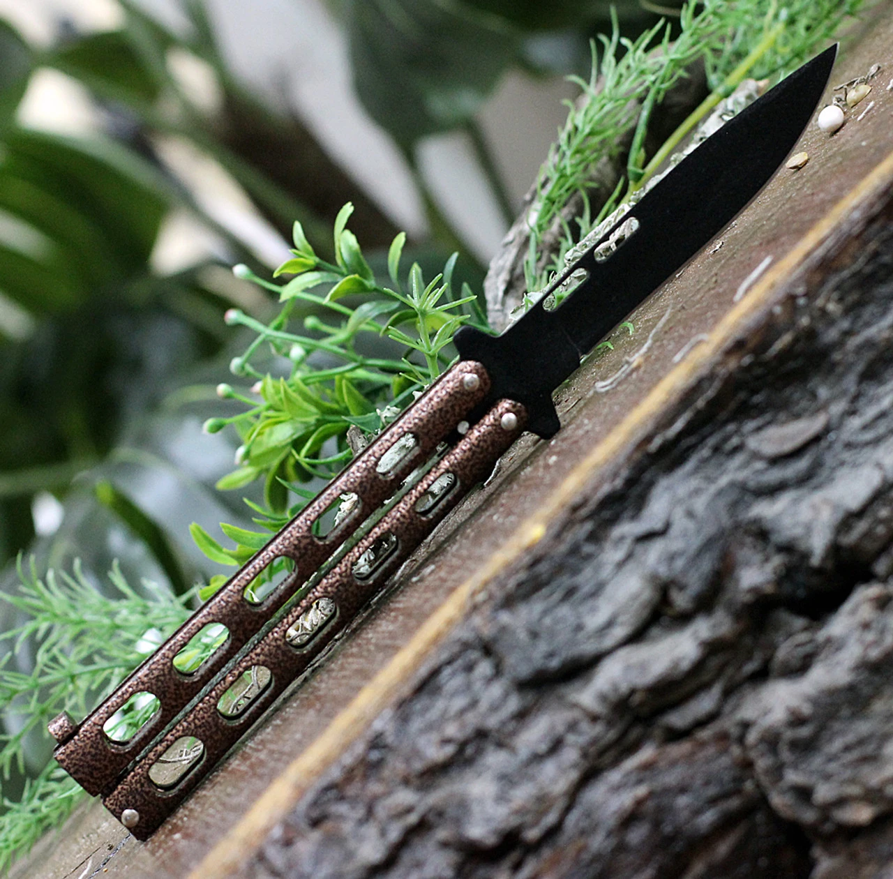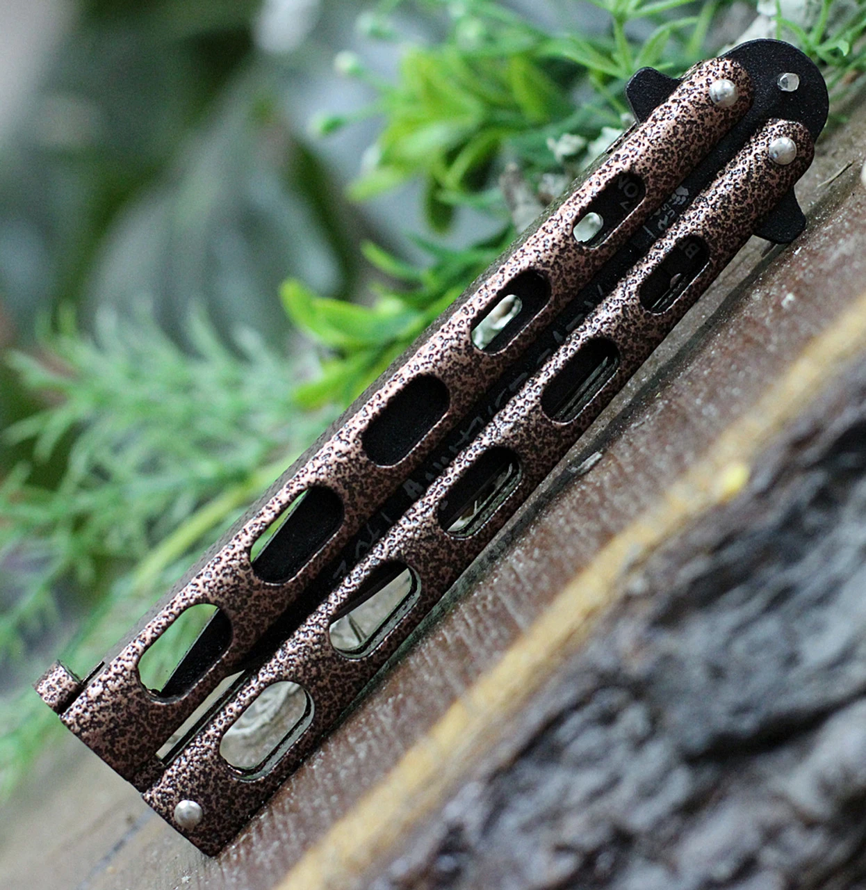 Bear & Son Cutlery 30th Anniversary Butterfly Knife ANN115CV , 4″ 440 Black Embellished Blade, Copper Vein Handle