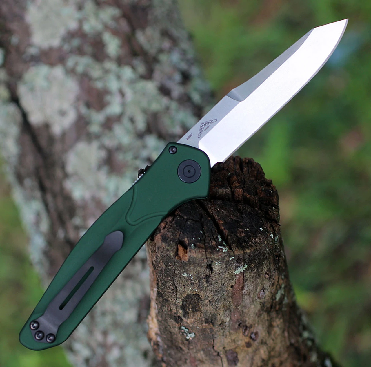 Benchmade Auto Osborne (9400) 3.40 Inch CPM-S30V Satin Plain Blade, Green Aluminum Handle