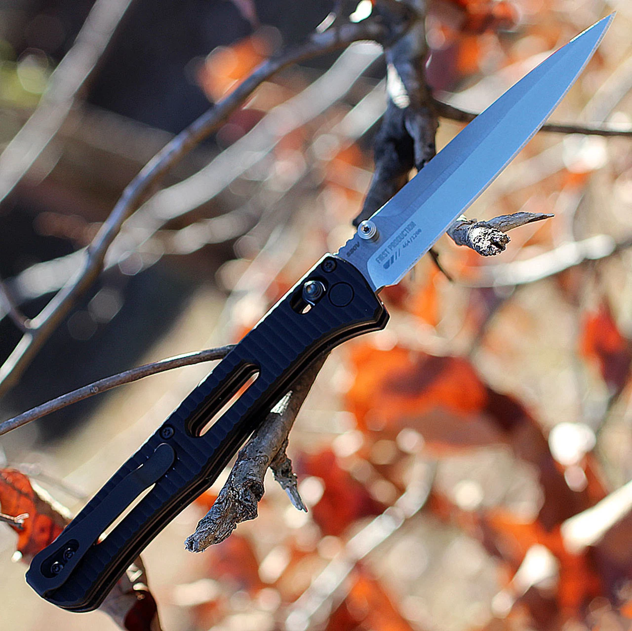 - CPM-S30V spear point blade offers superb cutting performance and piercing capability.