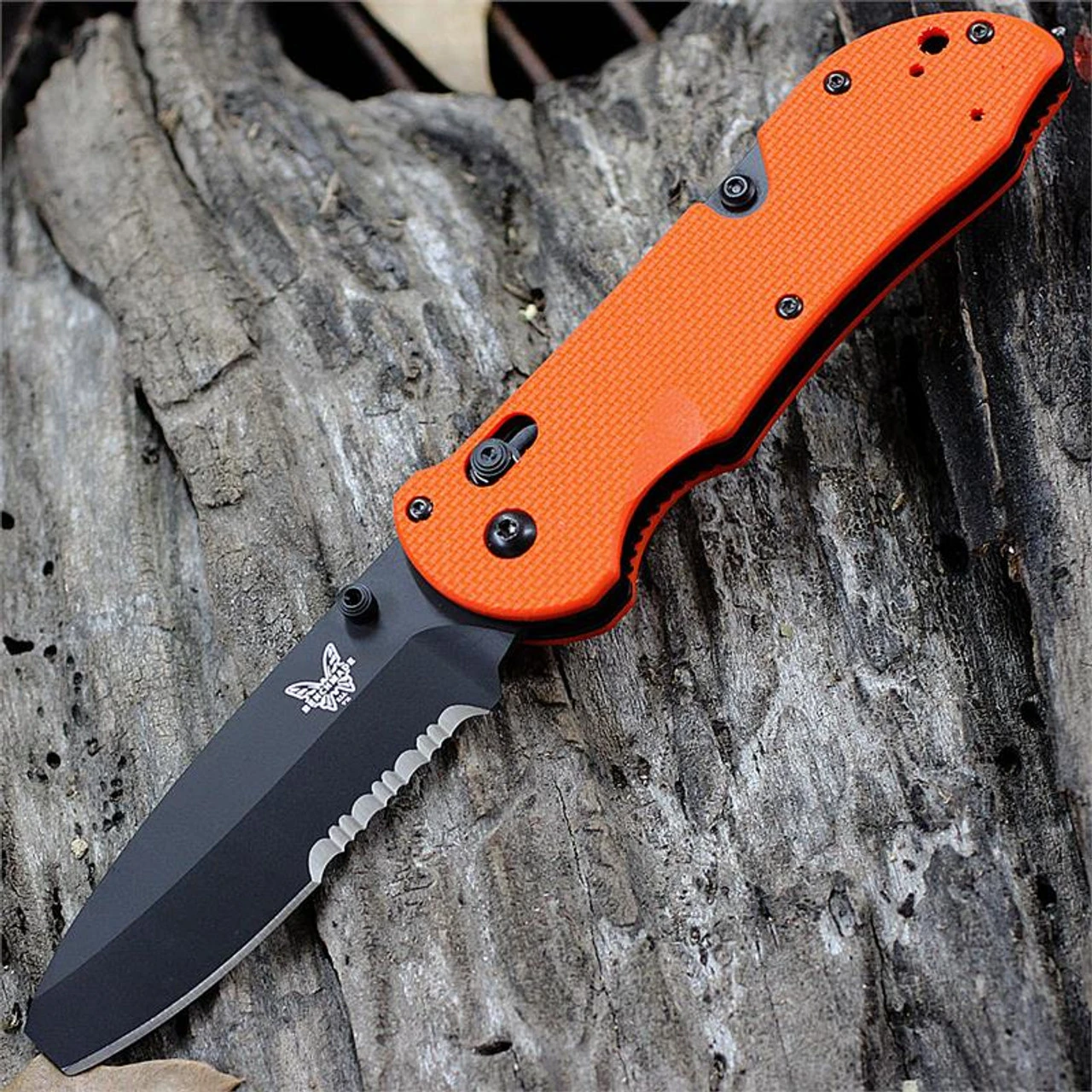 Benchmade Triage Utility Knife (916SBK-ORG) 3.5″ CPM-N680 Black Opposing Bevel Patially Serrated Blade, Orange G10 Handle, Hook