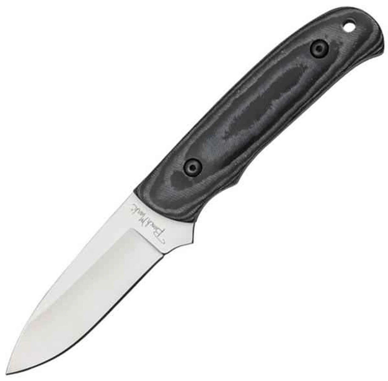Benchmark Fixed Blade. 7 1/2″ overall. 3 1/4″ stainless blade. Full tang. Black micarta handles. Lanyard hole. Black nylon belt sheath.