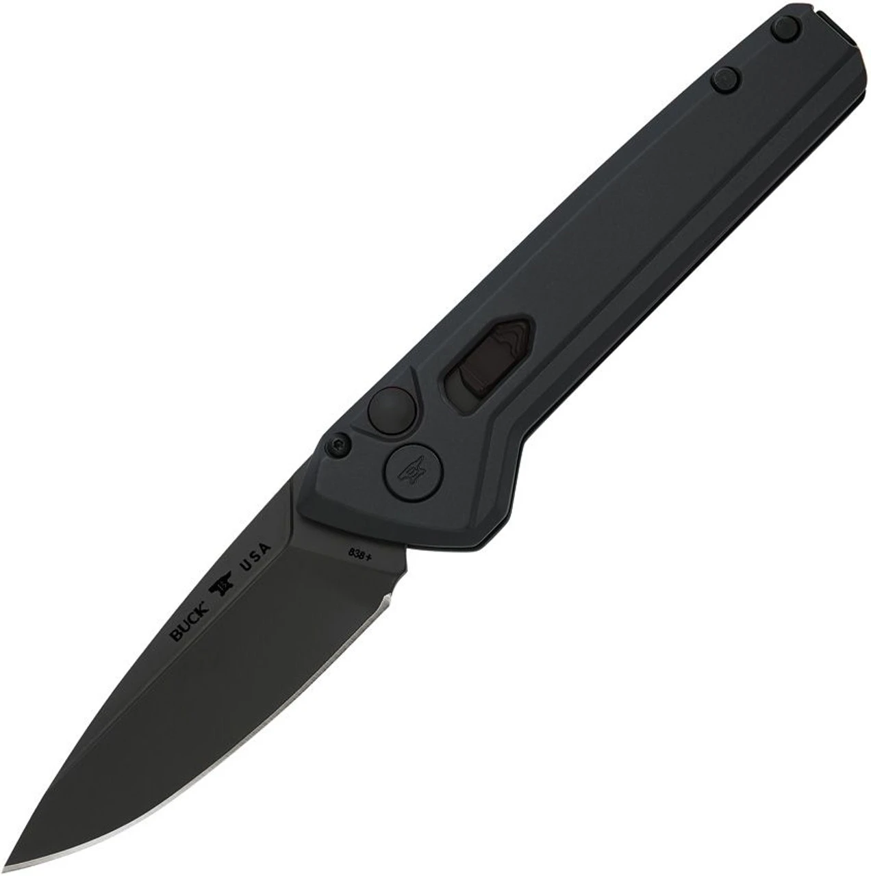 Buck Deploy Blackout Automatic (BU838BKS) 3.25″ S35VN Armor Black Cerakote Drop Point Plain Blade, Armor Black Coated Aluminum Handle
