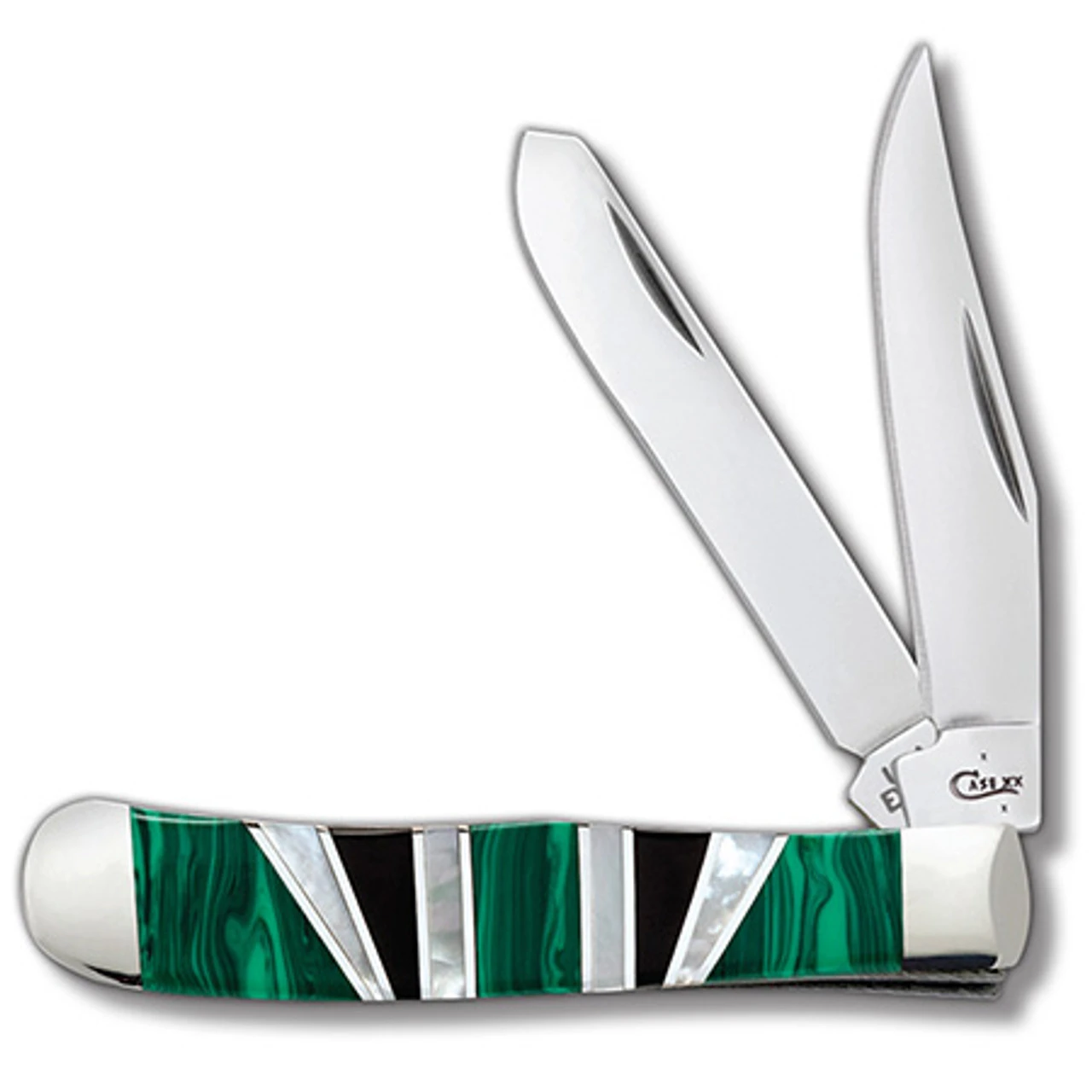 Could a Case® knife really make you green with envy? The latest exotic family from W.R. Case & Sons Cutlery Company just might. Green Malachite, with its characteristic vibrant two-tone green color carrying light green streaks, joins genuine Mother-of-Pearl and Jet Black Pearl creating a simply stunning handle. Tru-Sharp™ surgical steel blades and nickel silver spacers add luster, while a velvet box completes this presentation.