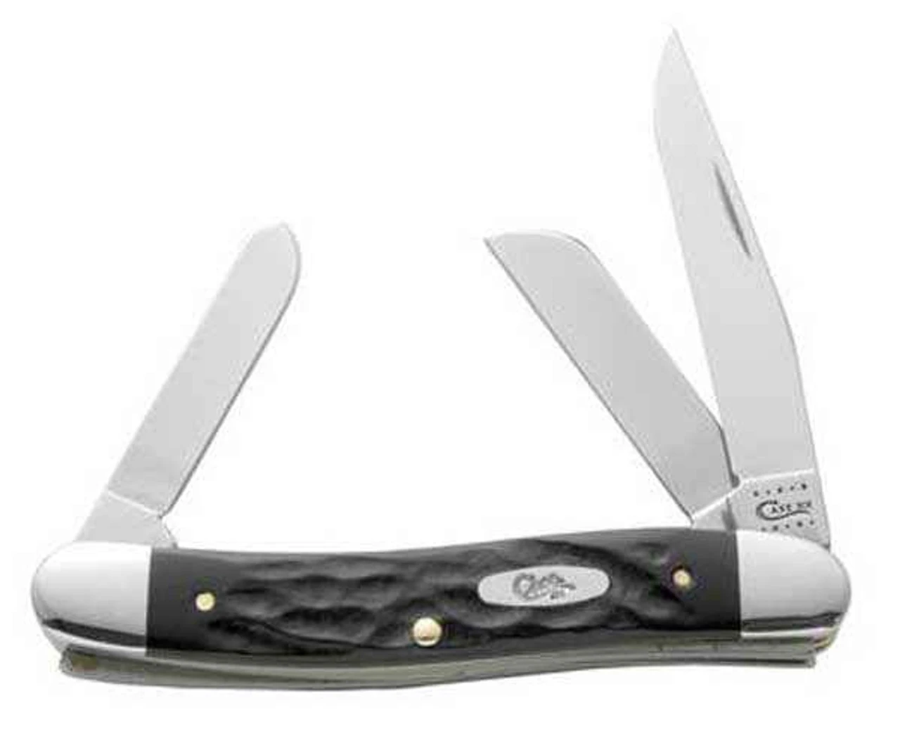 W.R. Case & Sons nearly indestructible black synthetic handle material meets classic jigging in this new reincarnation designed to be just as tough in use and looks as the original “Gum Fuddy” knives which were borne out of World War II when more traditional handle materials were scarce. The limited time in which Rough Black knives were originally made makes this handle material one of the most famous in Case history!