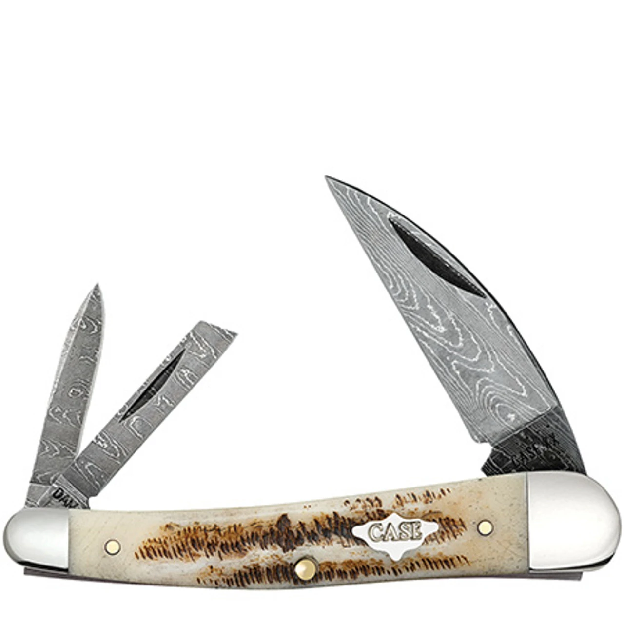 For daily tasks or serious work, the American Case Seahorse Whittler is the perfect choice. This professional-grade knife is 4 inches long when folded and weighs only 2.6 ounces. Bolsters are made from highly polished Nickel Silver, and the handle is Vintage Bone with a Coat Of Arms Nickel Silver CASE Inlay shield. To ensure maximum performance, the Seahorse Whittler has three blades made of Damascus Steel with Ladder pattern: 1 1/2″ Pen blade, 2 1/4″ Wharncliffe blade and 1 1/2″ Coping blade. Plus, it comes with a Limited Lifetime Manufacturer’s Warranty!