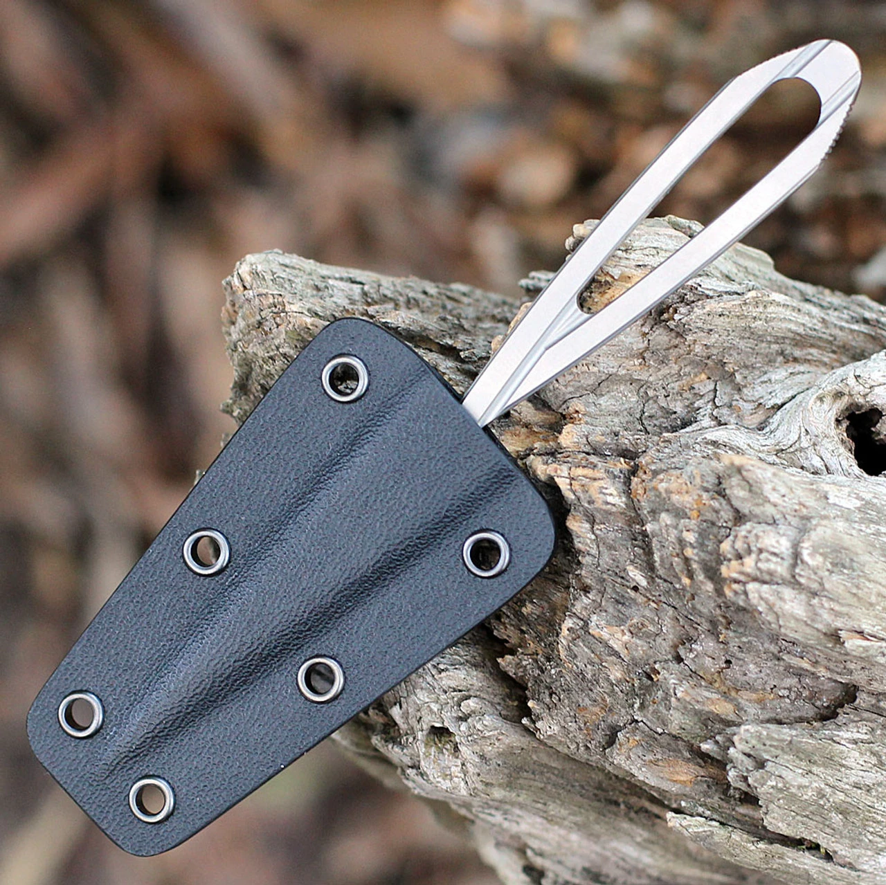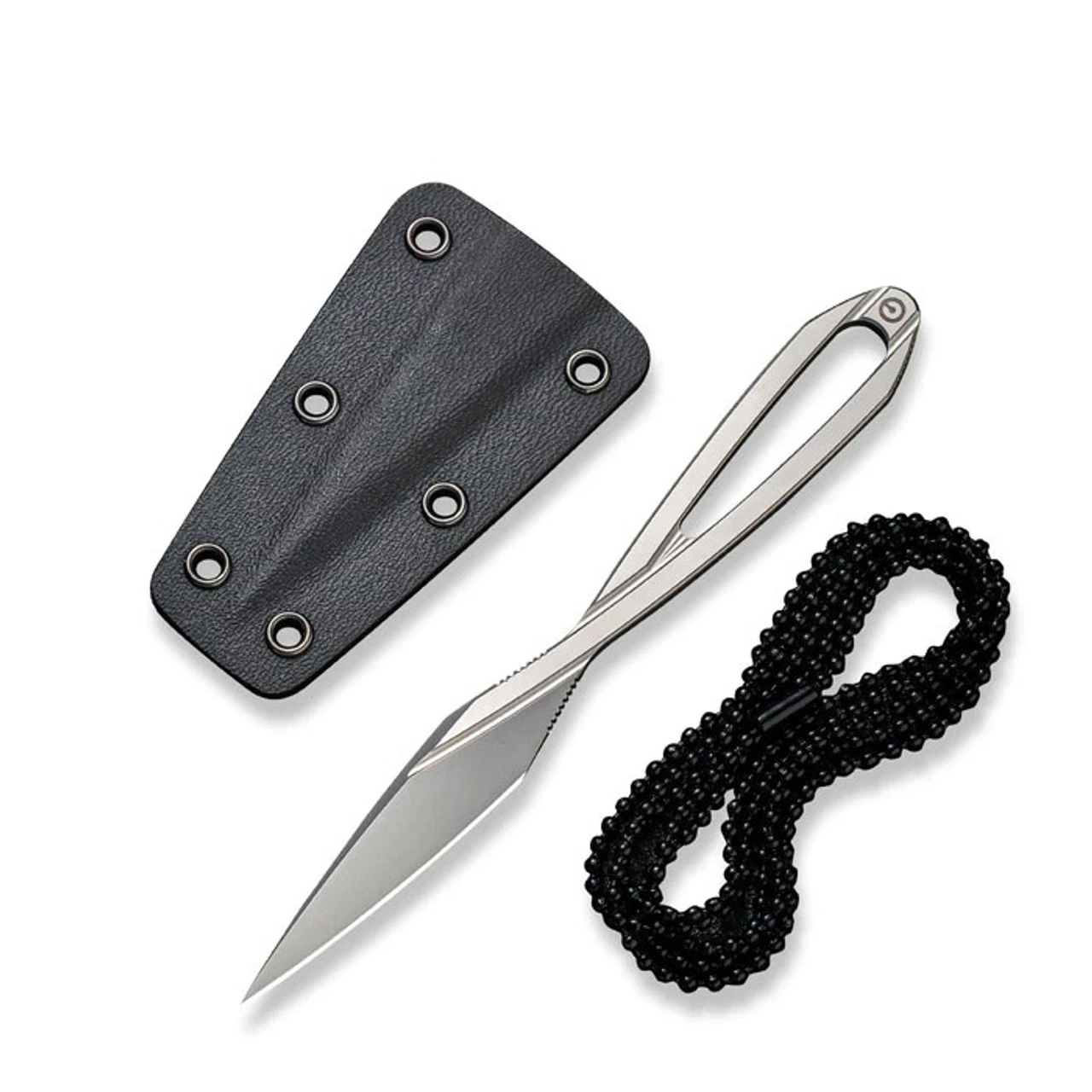 - Kydex neck sheath with chain.