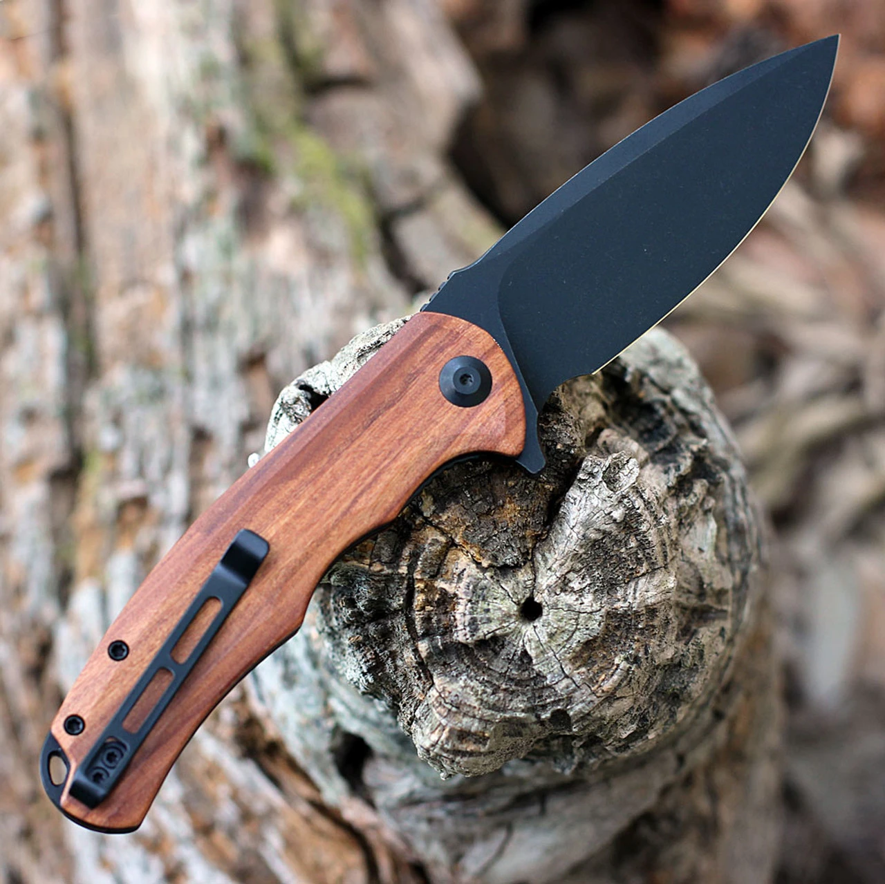 CIVIVI Praxis Folding Knife (C803H)- 3.75″ Blackwash 9Cr18MoV Drop Point Blade, Cuibourtia Wood Handle
