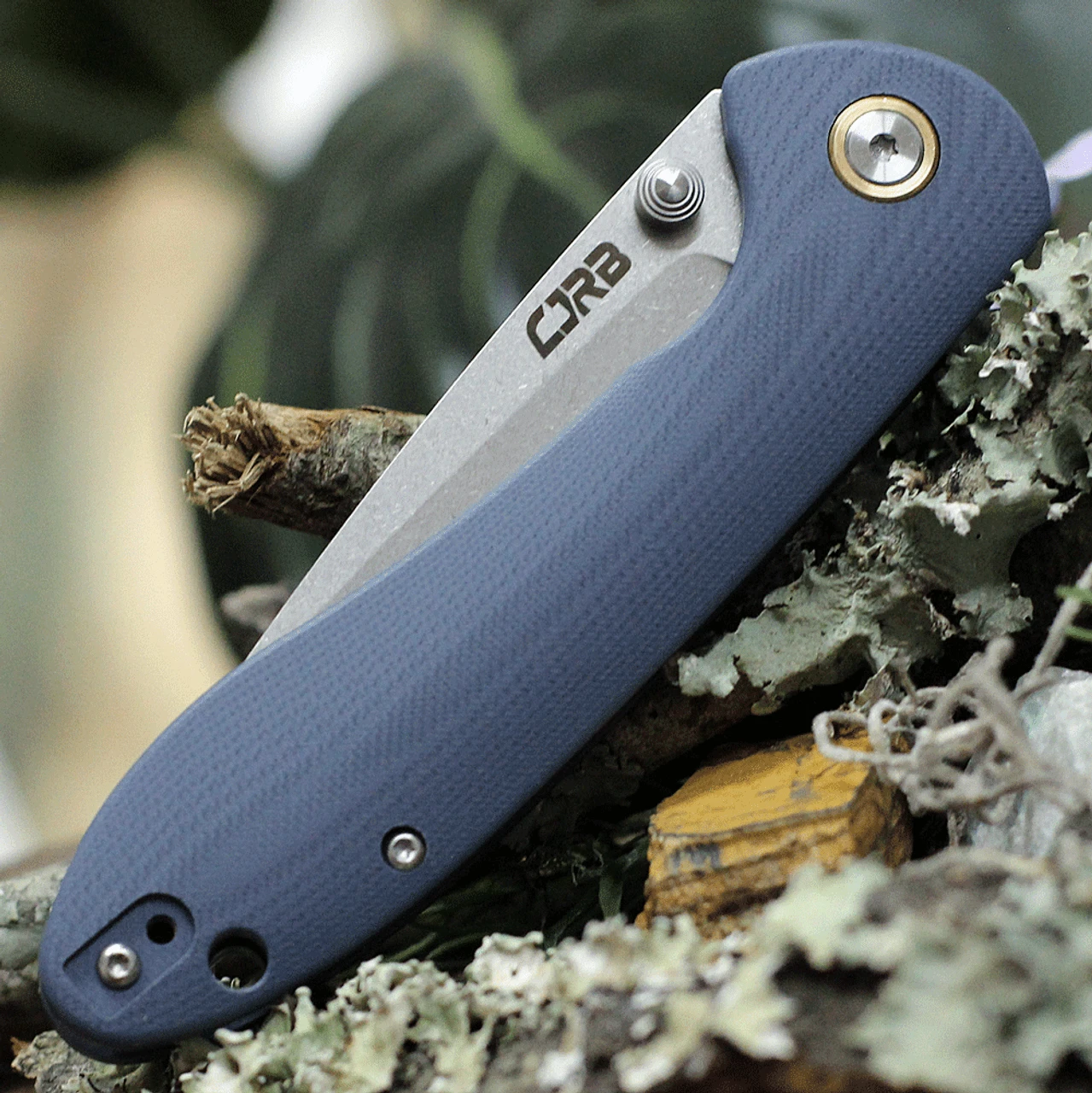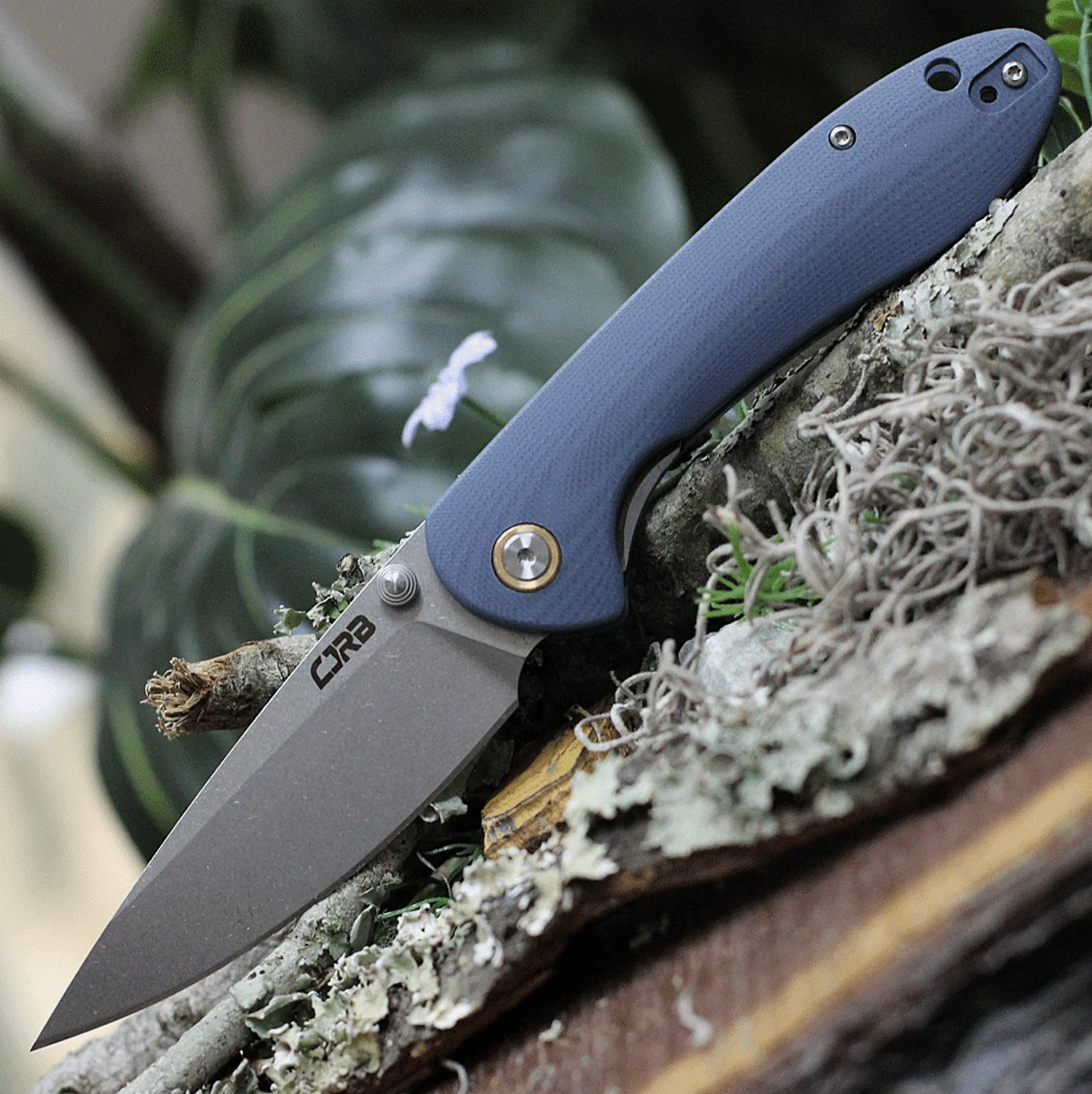 CJRB Cutlery Feldspar J1912-GYC, 3.53″ D2 Steel Stonewashed Plain Blade, Contoured Blue-Gray G-10 Handle