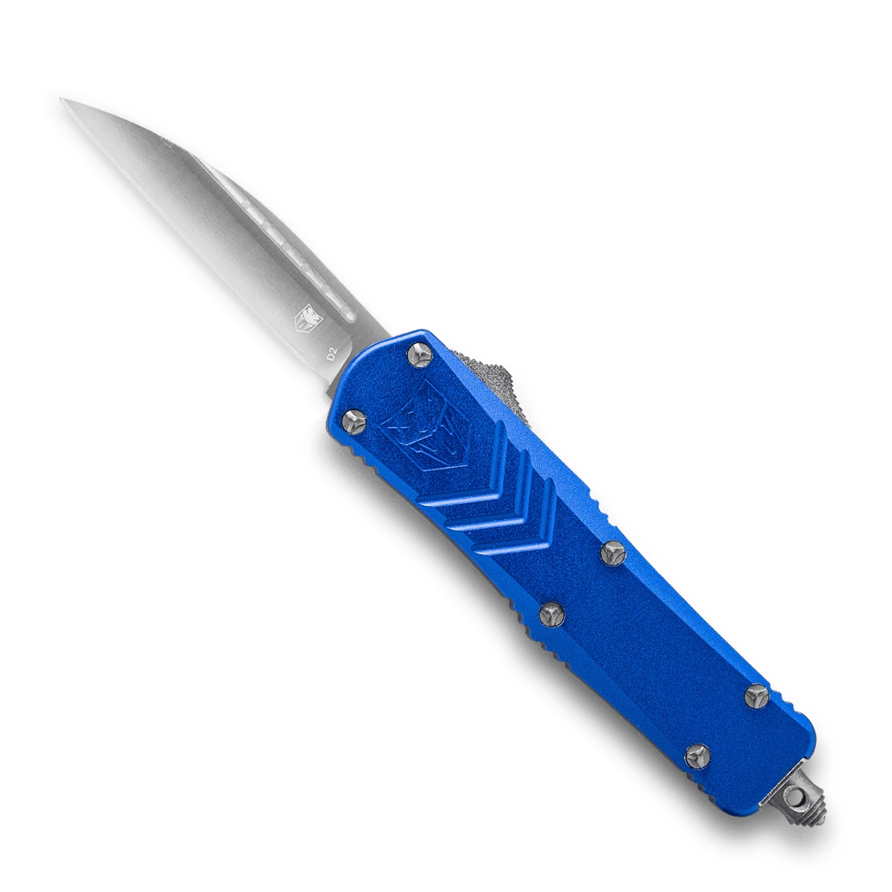 CobraTec Blue FS-X OTF Knife CTKSBLUFS-XSWNS, 2.75″ D2 STeel Wharncliff Plain Blade, Blue Aluminum Handle