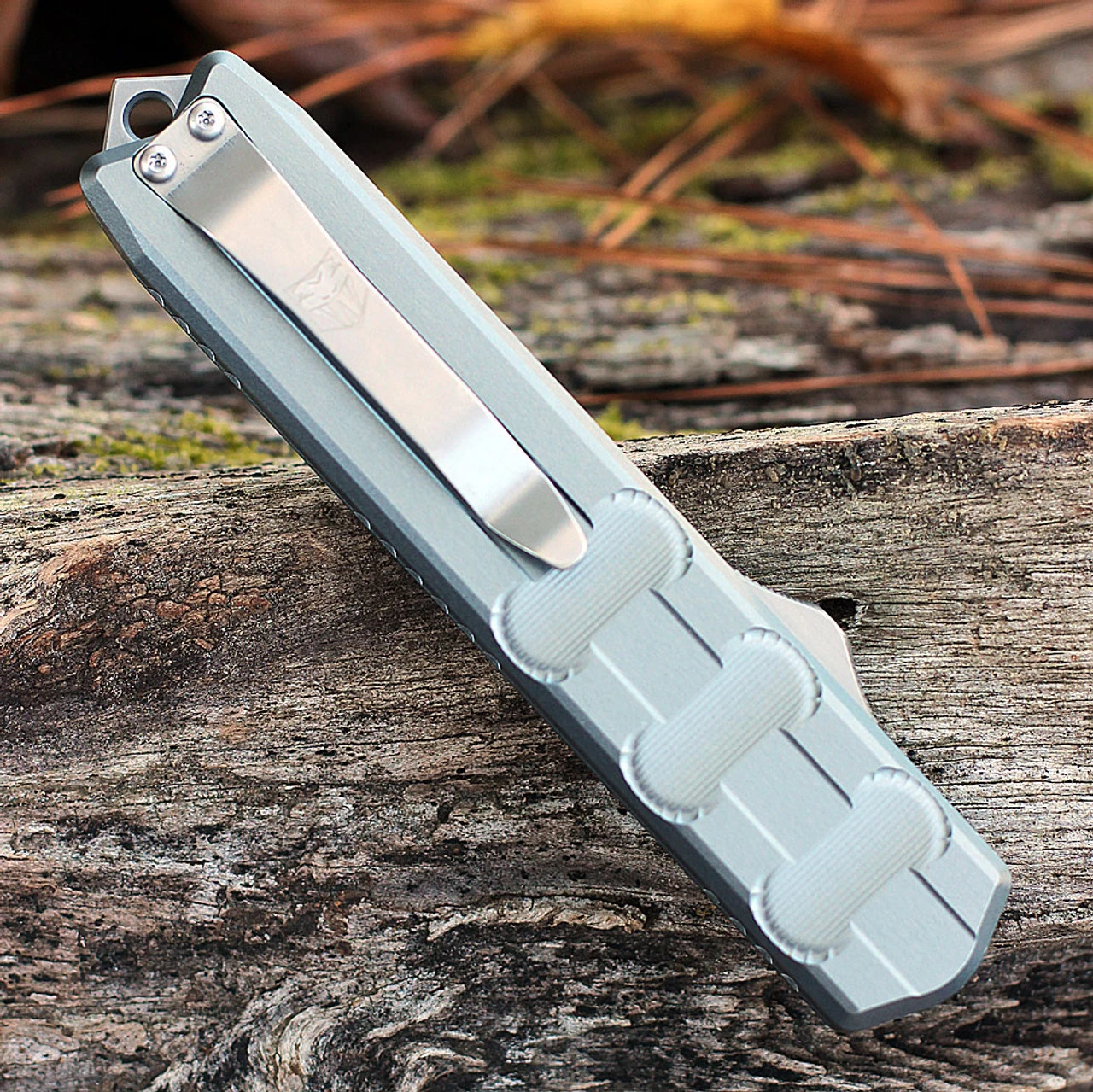 CobraTec Enforcer OTF (Out the Front) Automatic Knife (CTEGRYM390DNS) – 3.25″ M390 Satin Drop Point Blade, Grey 6061-T6 Chassis Aluminum Handle
