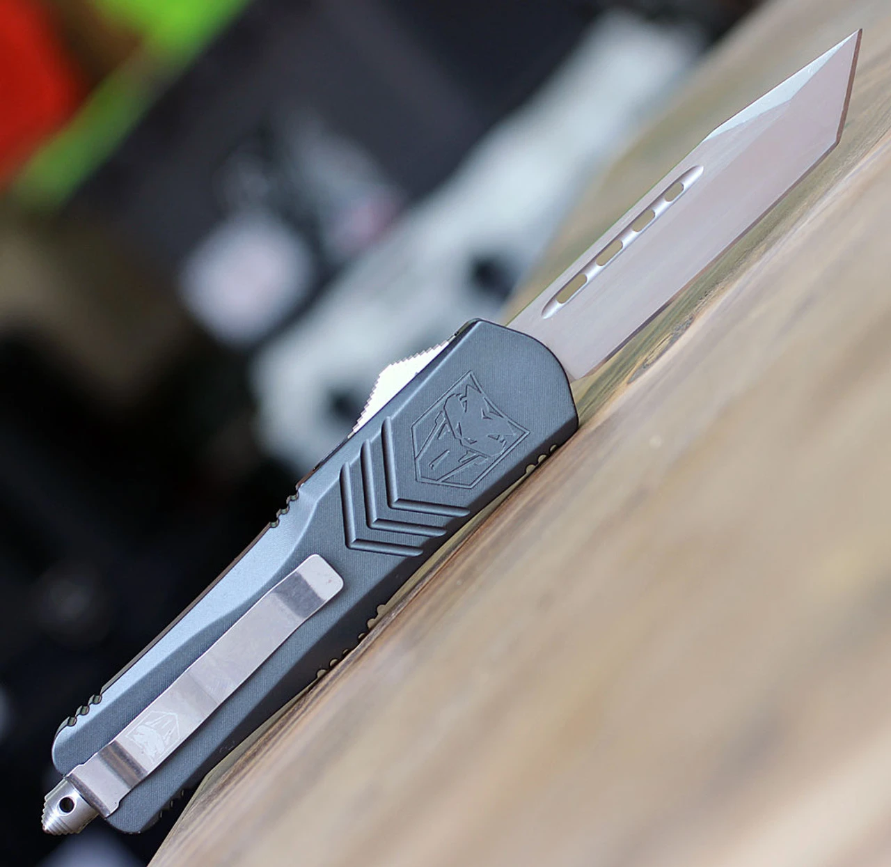 This CNC Machined OTF knife is very sleek and fits nicely in your pocket. The handle is expertly engineered from Aviation Aluminum and features a D2 Steel blade. The knife is ambidextrous as the pocket clip can be switched to either side of the handle depending on your preference