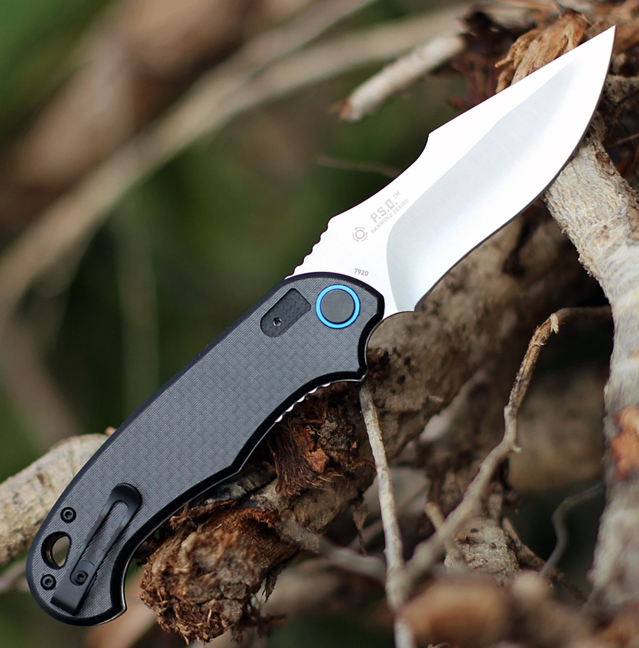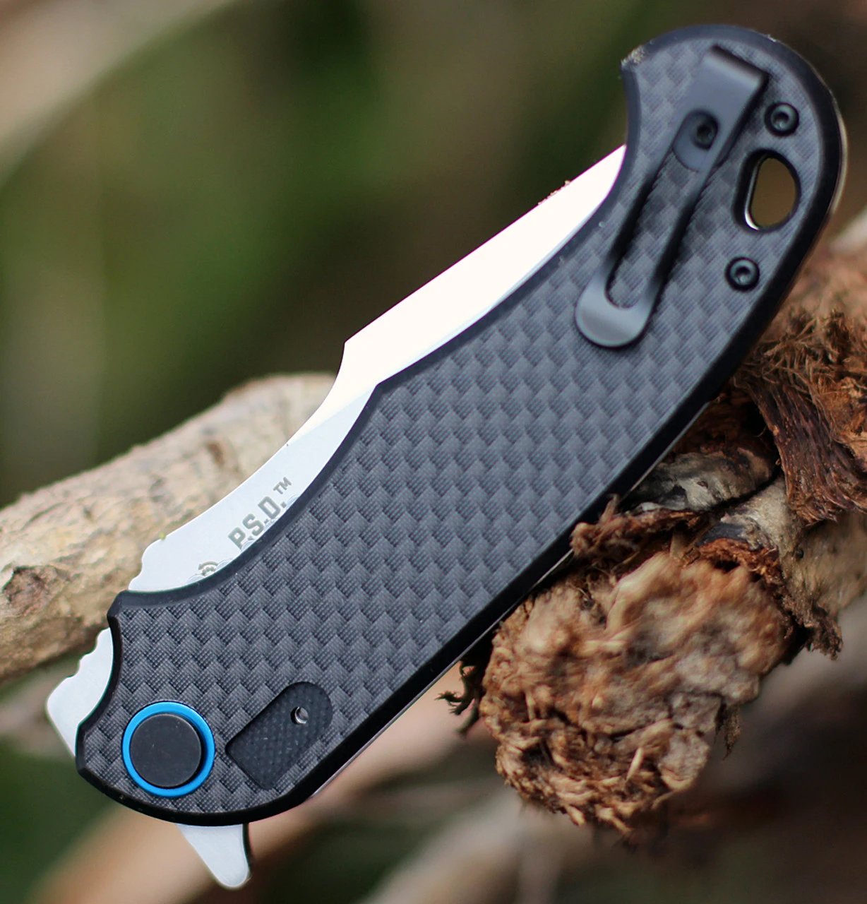 CRKT 7920 P.S.D. Assisted Opening, 3.63″ 1.4116 Steel Satin Plain Blade, Black G10 W/ Carbon Fiber Overlay Handle