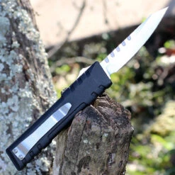CobraTec Blue FS-X OTF Knife CTKMBLUFS-XMTS, 3″ D2 Steel Tanto Serrated Blade, Blue Aluminum Handle